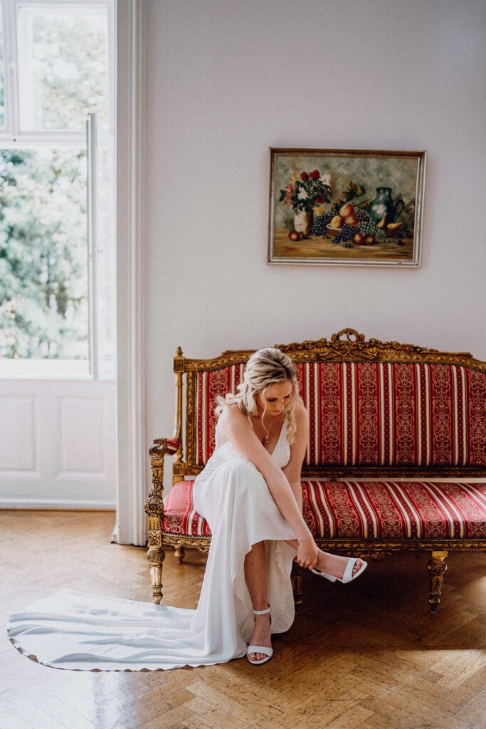 Nach unse­rem Gespräch nehmt ihr euch in Ruhe Zeit, alles sacken zu las­sen und zu spü­ren, ob ihr euch mit mir und mei­ner Arbeits­wei­se wohl­fühlt. Wenn ihr merkt, dass wir gemein­sam eure Hochzeit gestal­ten möch­ten, gebt ihr mir ein­fach Bescheid. Euren Ter­min hal­te ich in der Zwi­schen­zeit für eine Woche exklu­siv für euch frei.